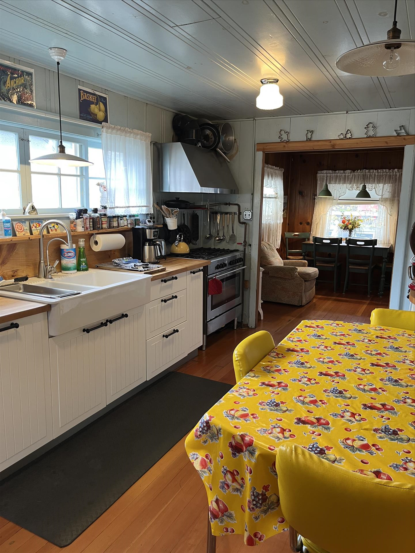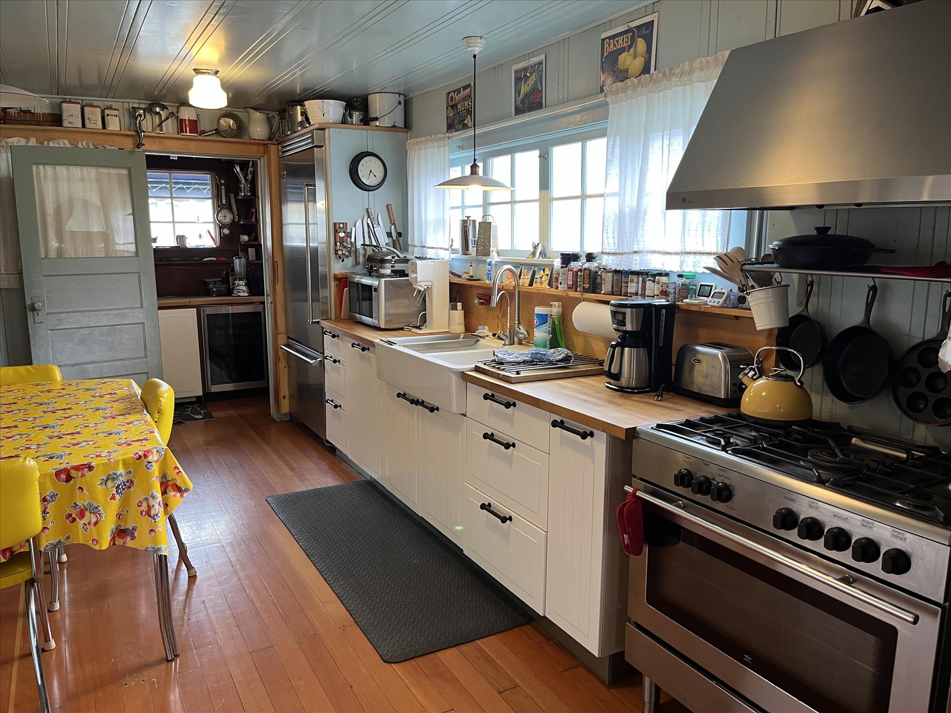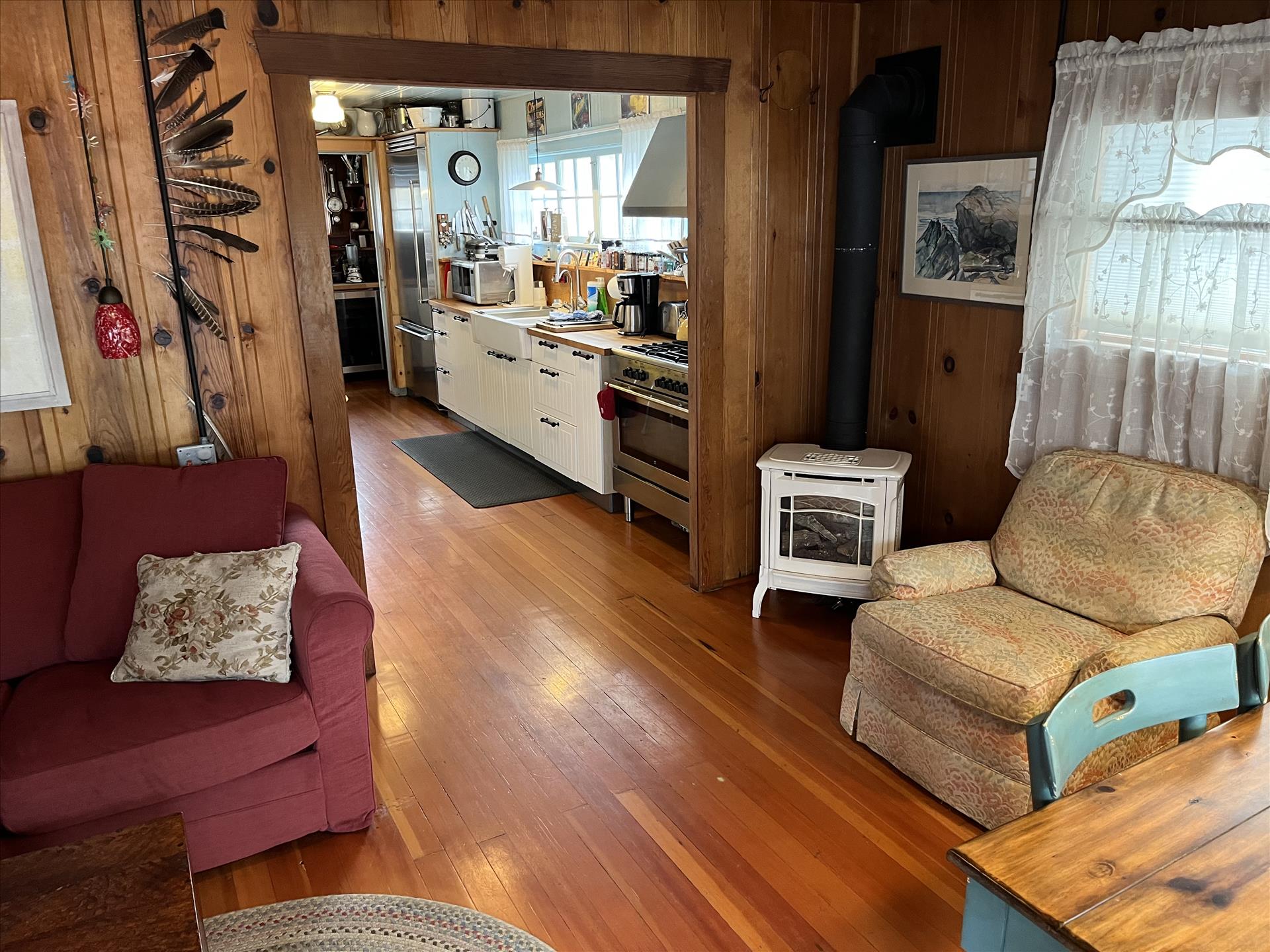 This remodeled cabin is an absolute jewel. Beautiful wood floors throughout and a large gourmet kitchen with new appliances for those that love to cook.